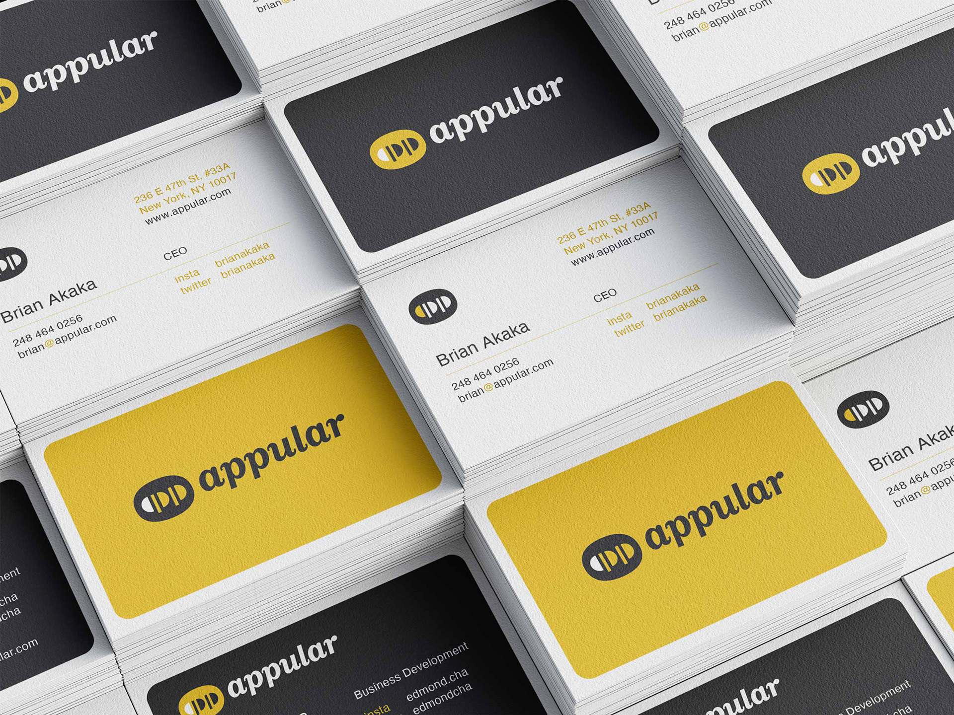 The Appular logo is a combination of the word "app," and two fruit trees, which is a subtle nod to Apple, who had just launched the first mobile App Store at the time. A bold, high contrast yellow and black color palette was chosen to help Appular stand out and differentiate itself in the young digital landscape.